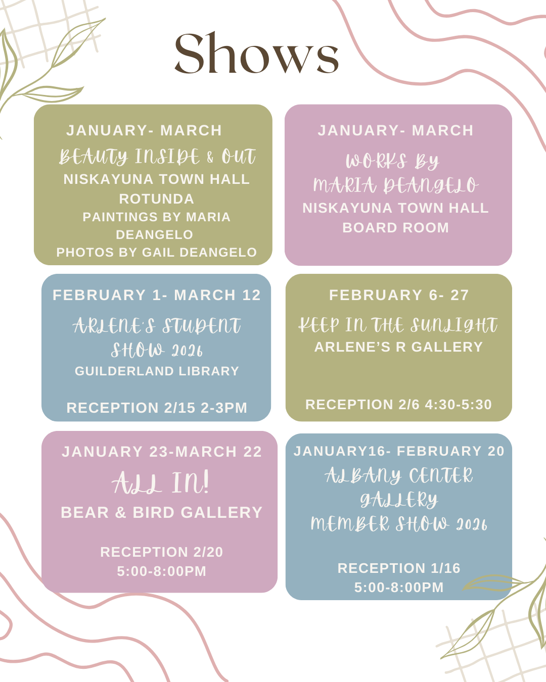 I am so happy to be part of shows around the Capital Region. See you around the 518!