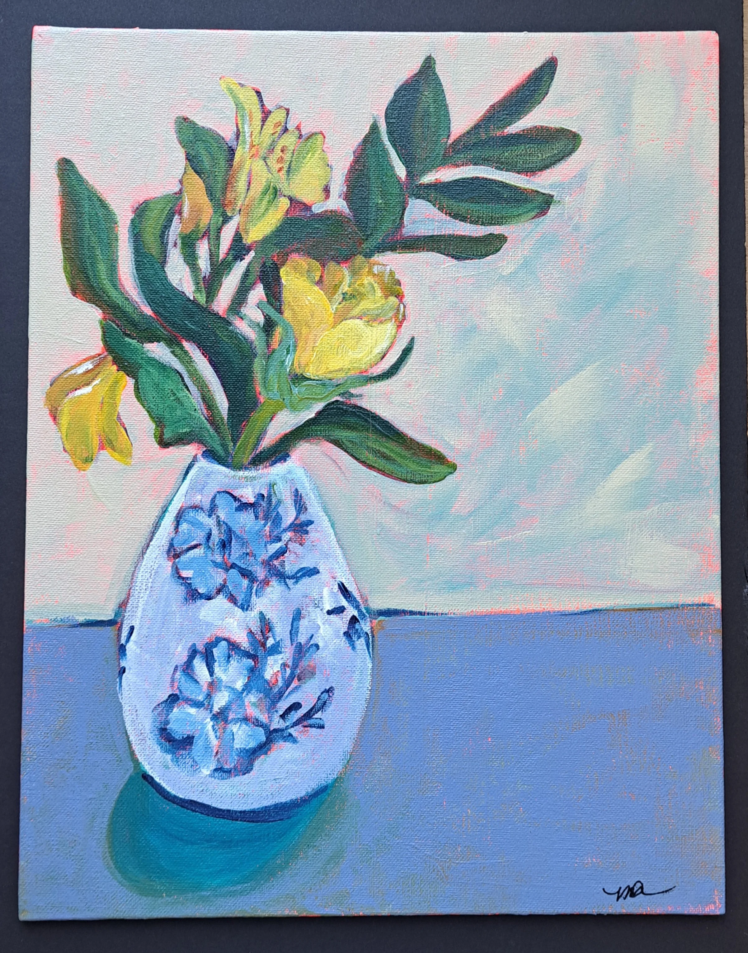 “Bloom” is a 10X10” acrylic painting included in the Art Associates & Schenectady Art Society’s online show and sale.