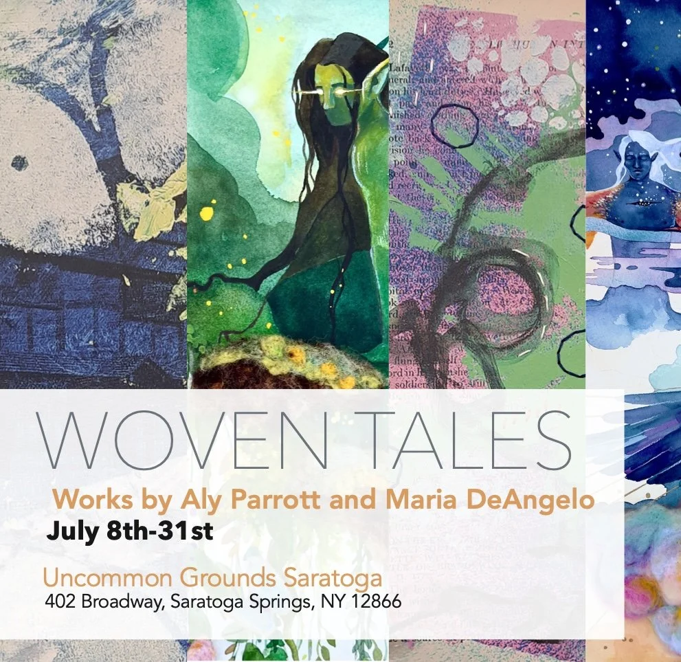 Woven Tales is a show of the works by Aly Parrott and Maria DeAngelo. It is an honor to show my abstract works with the beautiful, other worldly images that Aly creates.
