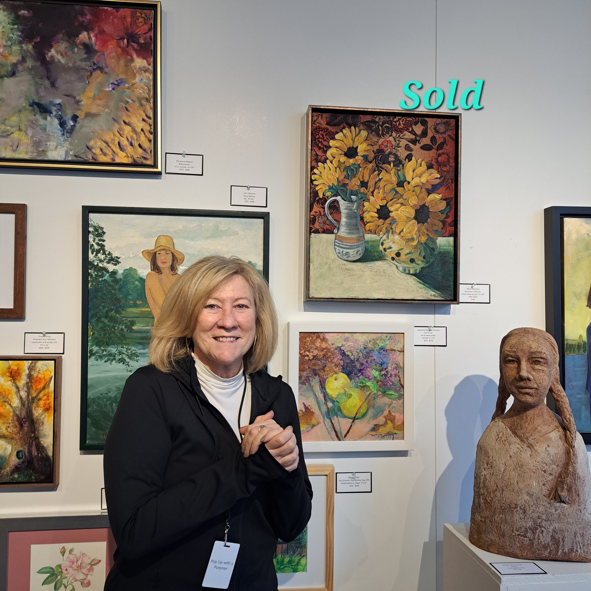 Sunflowers in Italian Jar find it’s new home after being in The Art Center of Troy Member Show.